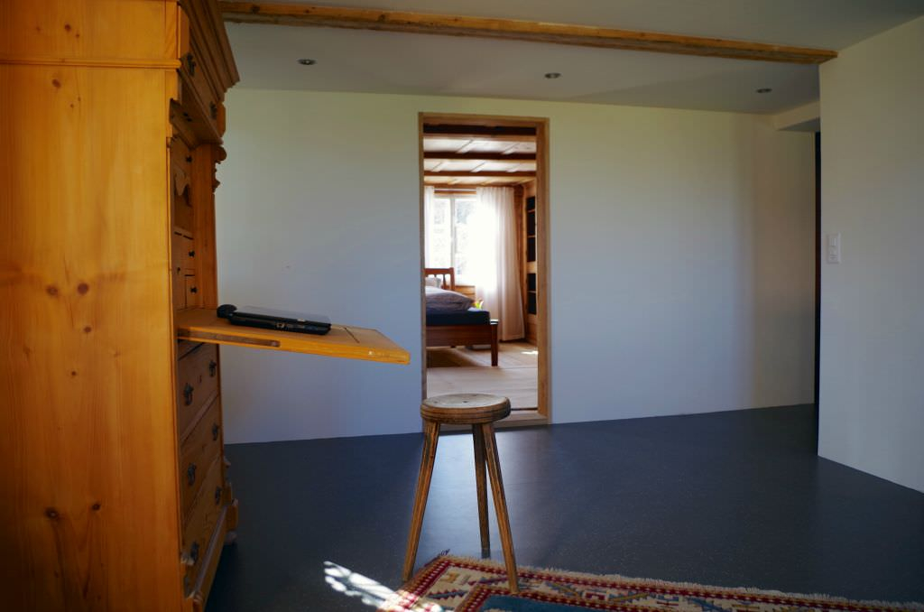 Das möbilierte Studio befindet sich im EG unseres Bauernhauses und hat einen separaten Eingang mit Wohnküche und Schlafzimmer.